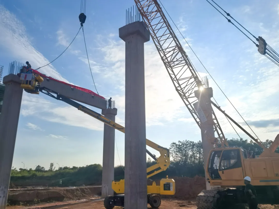 項(xiàng)目直擊丨航發(fā)智慧物流園018號(hào)項(xiàng)目首片預(yù)制梁精準(zhǔn)吊裝到位
